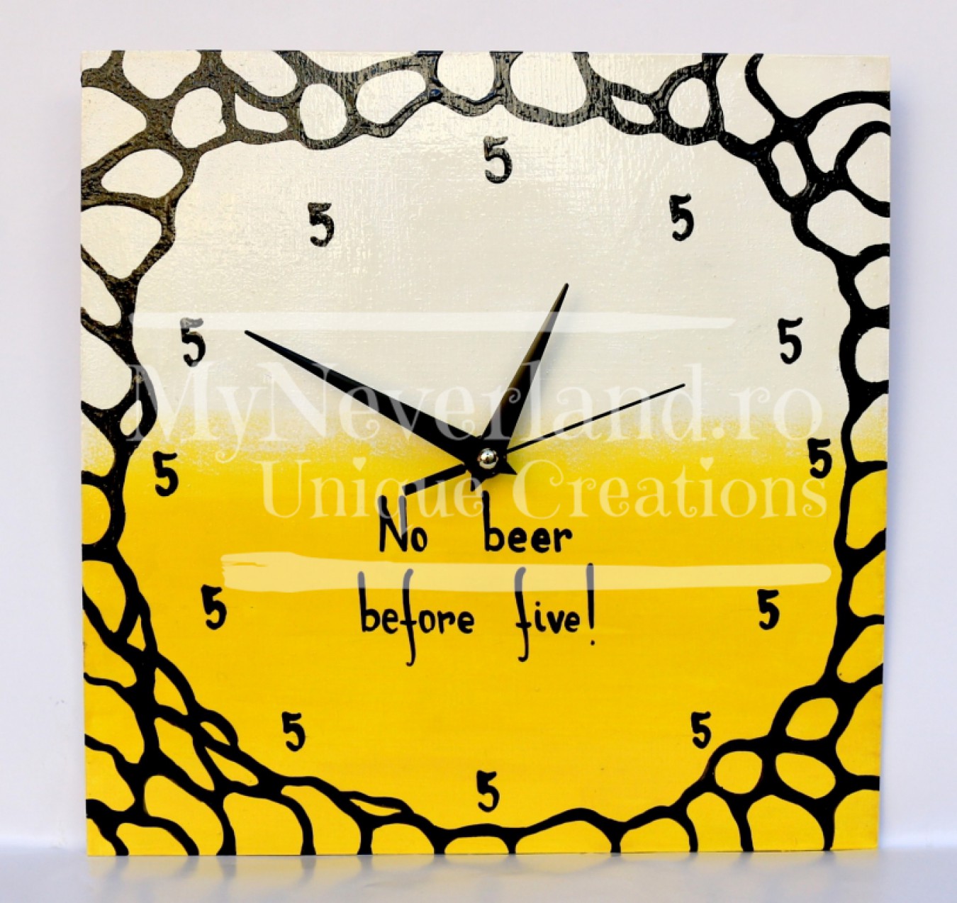 Ceas de perete, pe suport de lemn placaj, pictat manual si lacuit la final pentru protectie. Tehnica: culoare acrilica Dimensiune : 25 cm /25 cm Pentru orice informatii privind acest obiect folositi formularul "contact" sau adaugati produsul in cos.