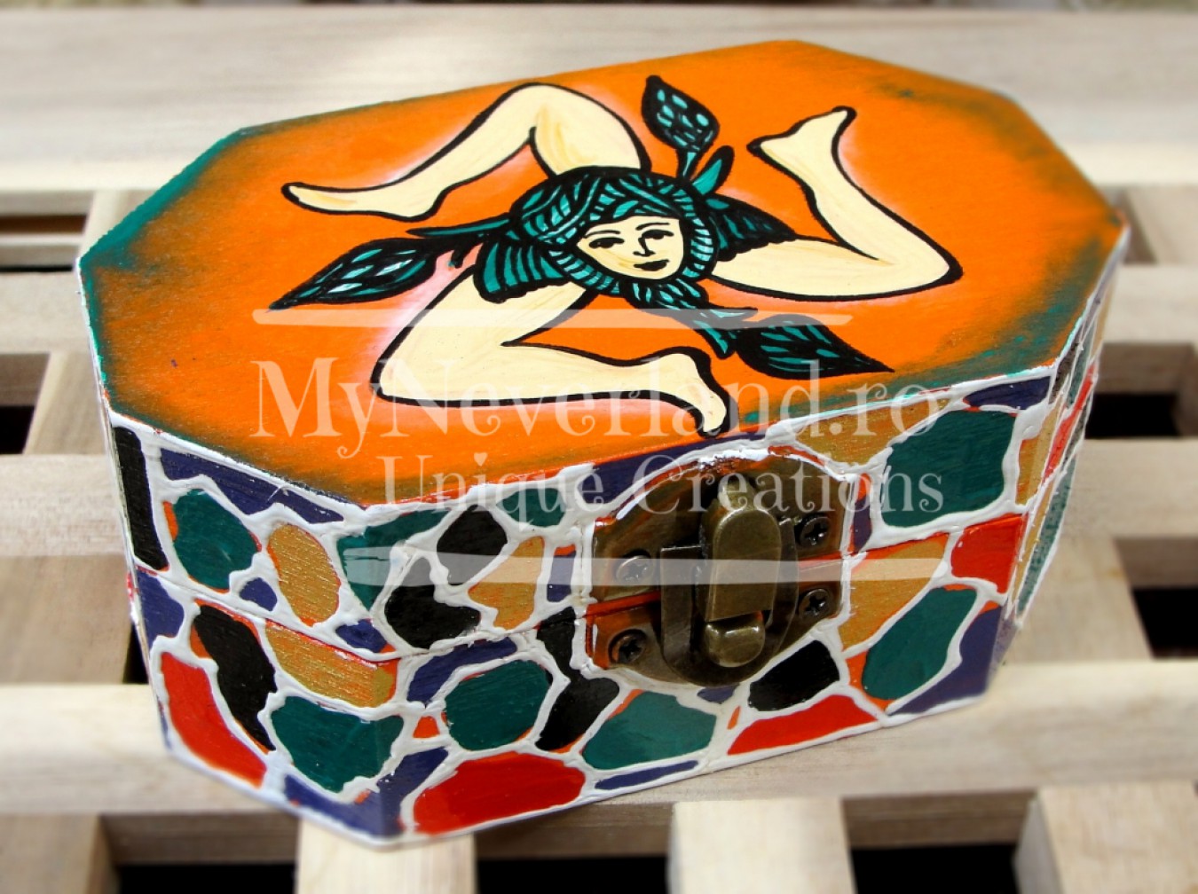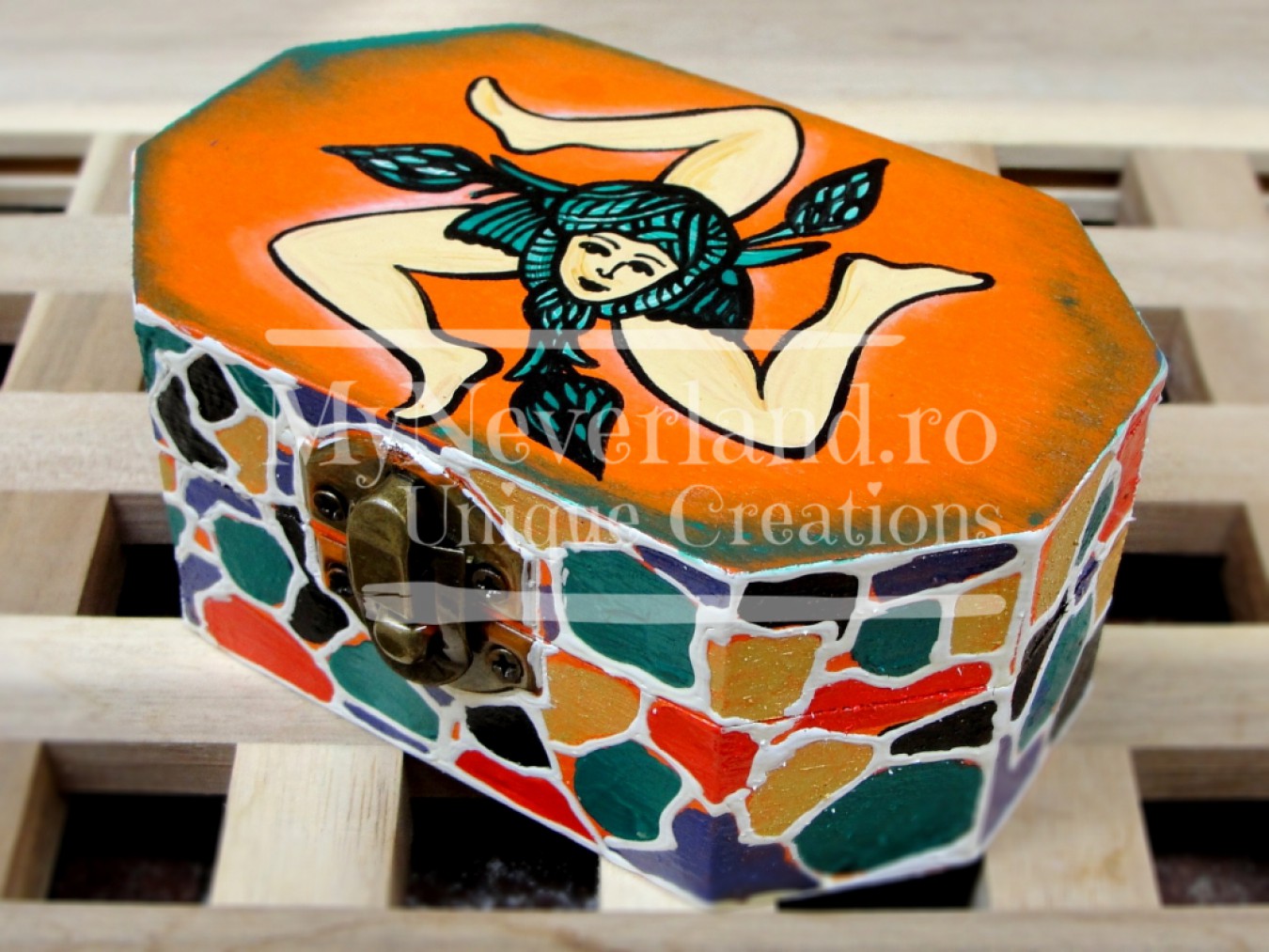 Cutie de lemn pentru bijuterii personalizata. Tehnica culoare acrilica , lacuita la final pentru protectie. Pentru intrebari legate de acest obiect, folositi formularul de "contact" sau adaugati produsul in cos.