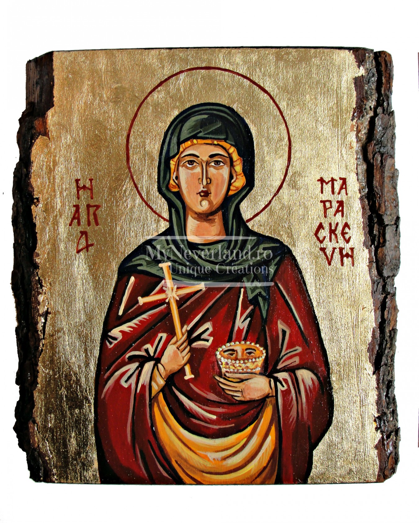 Icoana pictata pe blat de lemn preparat. Icoana realizata la comanda, pictata manual in culori acrilice cu aplicatie de foita de aur. Dimensiuni aproximative: 20/12/2 cm (dimensiunile pot varia cu 1-2 cm in plus sau in minus, deoarece blaturile sunt taiate din copaci diferiti si nu pot fi identice unul cu altul). Pentru orice intrebari legate de realizarea unei icoane, folositi formularul de "contact" sau adaugati produsul in cos.