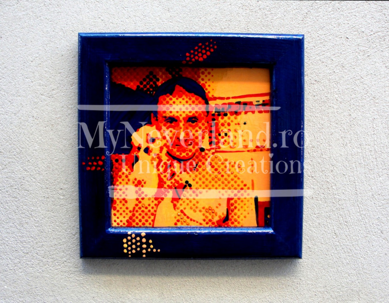 Tehnica: tehnica mixta si acrilic pe lemn. Lacuit la final pentru protectie si durabilitate. Dimensiuni: 23.5/23.5 cm. Pentru orice informatii legate de realizarea unui portret Pop Art, folositi formularul de "contact" sau adaugati produsul in cos.
