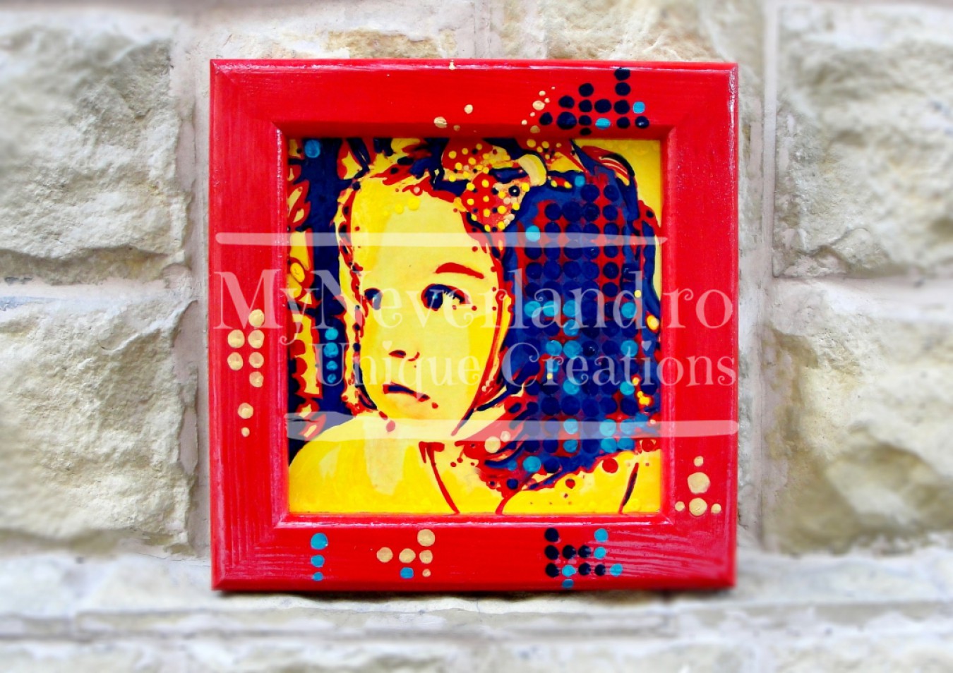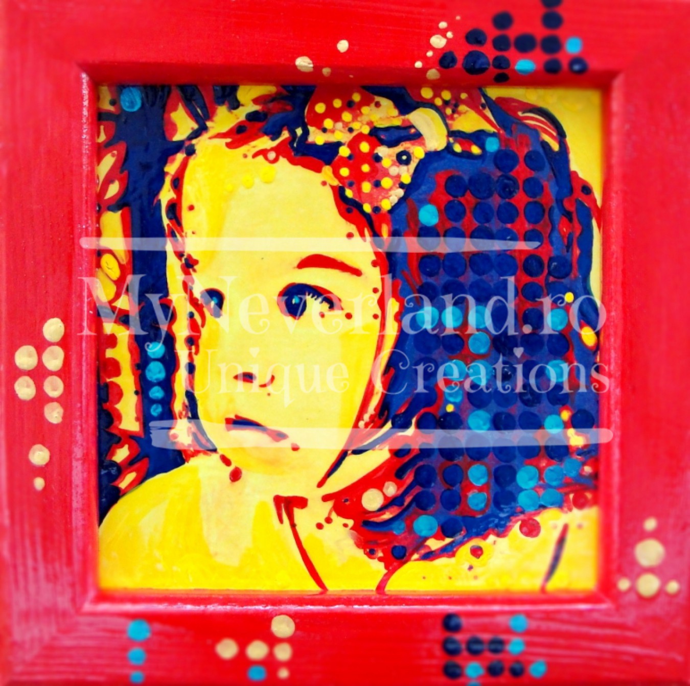 Timpurile moderne pe care le traim in ziua de azi se impletesc perfect cu abordarile moderne din arta, construind astfel universul zilelor noastre. Tablourile si portretele realizate in maniera Pop Art, reprezinta un cadou inedit, modern si deosebit. Se poate realiza in maniera Pop Art portretul copilului tau, al prietenei tale, al iubitului sau iubitei s.a.m.d. Pretul se refera la portretul realizat la aceste dimensiuni, pentru alte dimensiuni pretul se recalculeaza.