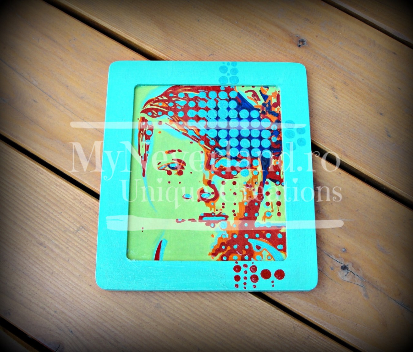 Timpurile moderne pe care le traim in ziua de azi se impletesc perfect cu abordarile moderne din arta, construind astfel universul zilelor noastre. Tablourile si portretele realizate in maniera Pop Art, reprezinta un cadou inedit, modern si deosebit. Se poate realiza in maniera Pop Art portretul copilului tau, al prietenei tale, al iubitului sau iubitei s.a.m.d. Tehnica: tehnica mixta si acrilic pe lemn. Lacuit la final pentru protectie si durabilitate. Dimensiuni: 25/22 cm. Pentru orice informatii legate de realizarea unui portret Pop Art ,folositi formularul de "contact" sau adaugati produsul in cos.